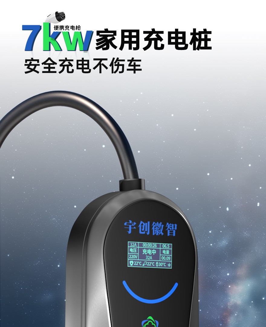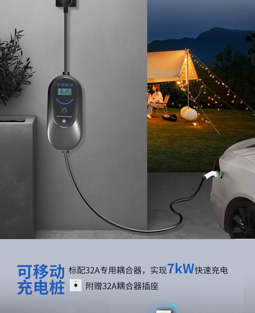 2、32A/7KW 耦合器插座款、空开固定款具有七档充电电流设置功能