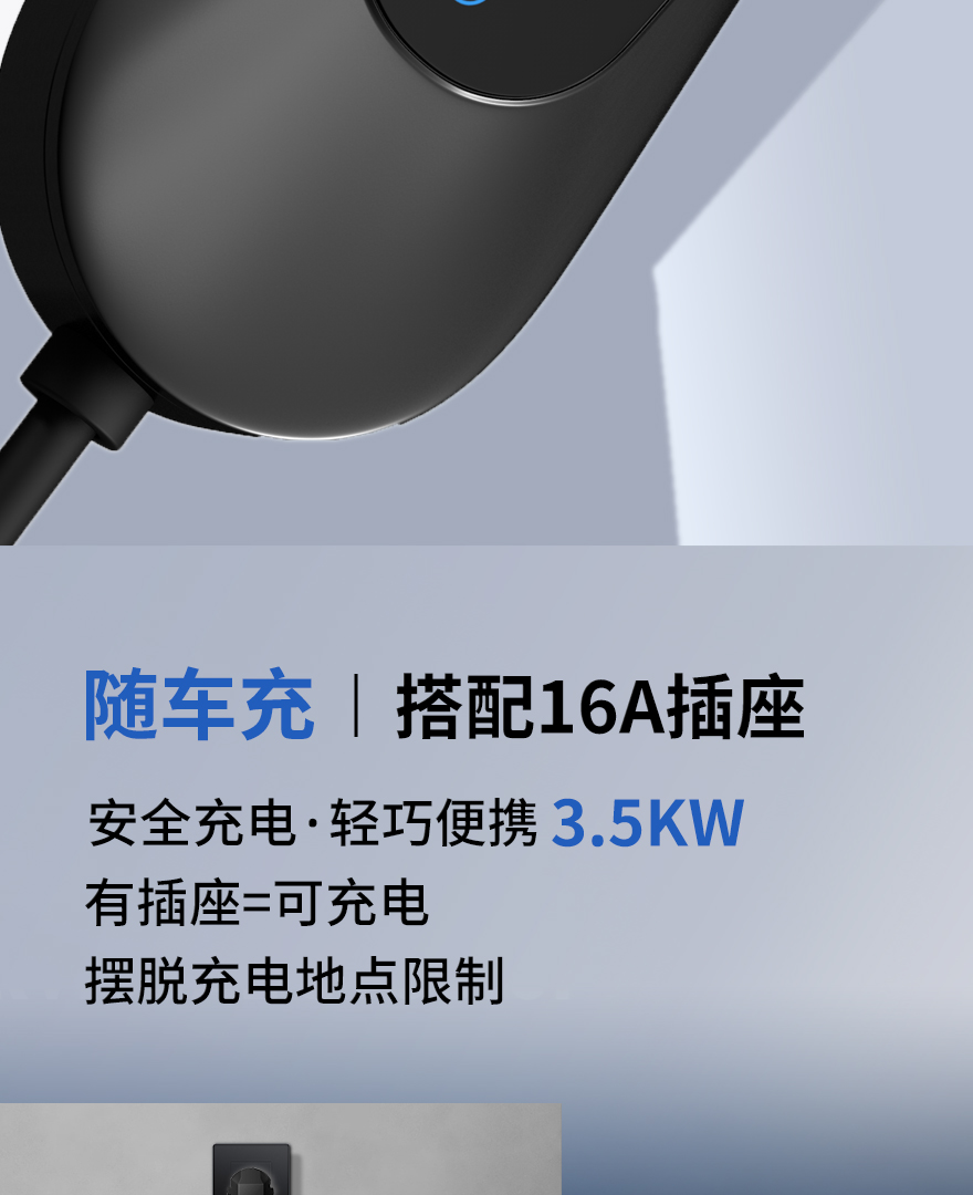 3、16A/3.5KW三孔插头款具有四档充电电流设置功能